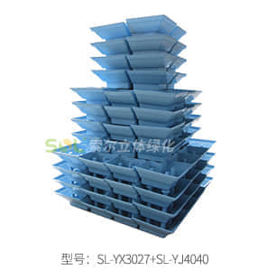 由SL-YH7526組合花盆構成的花柱,每一層為4個花盆,整個花柱直徑為1000mm。 由SL-YT5030組合花盆構成的花柱,每一層為9個花盆,整個花柱直徑為1500mm。