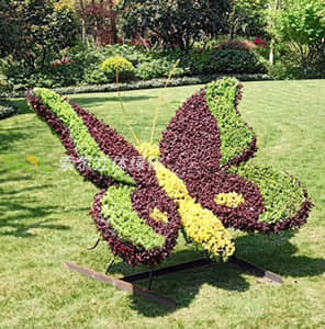 在屋頂草坪或是空地中,用鋼結構為主體,用花草植物做裝飾,形成各種造型可愛的小型綠雕,能豐富屋頂花園的綠化形式,讓屋頂花園更富有生命力。